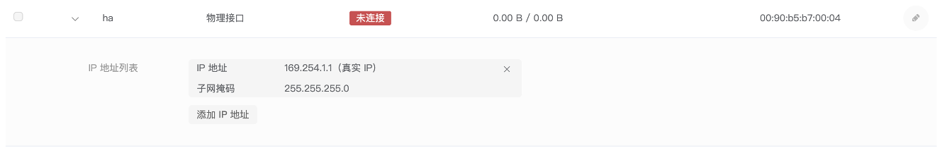 - 配置主设备 的 HA 网口 IP ,例如:1.1.1.1/24。