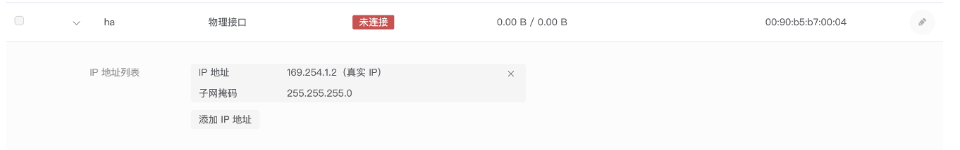 - 配置主设备 的 HA 网口 IP ,例如:1.1.1.2/24。