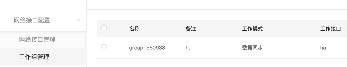 - 创建HA工作组,选择数据同步模式,选择HA网卡。注意填写区分工作组名字、备注。