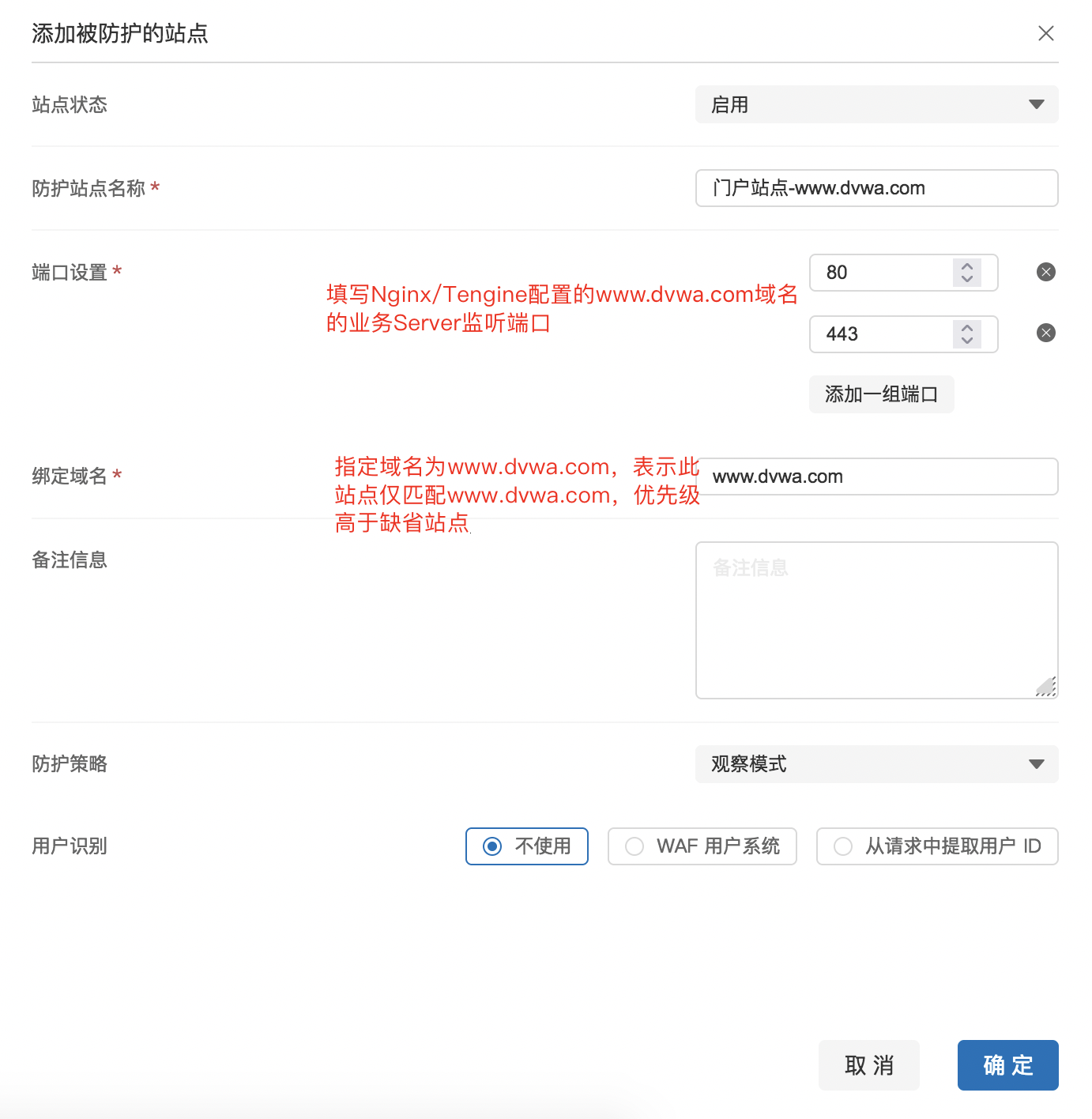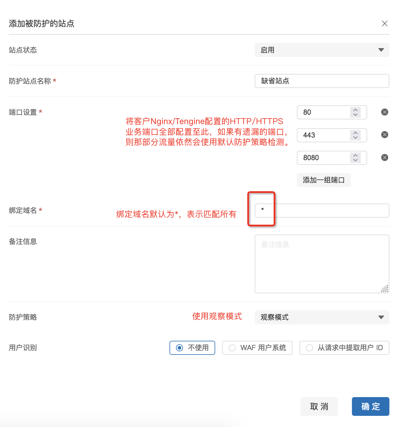- 默认对Nginx/Tengien引流过来的流量,使用 默认防护策略进行检测;