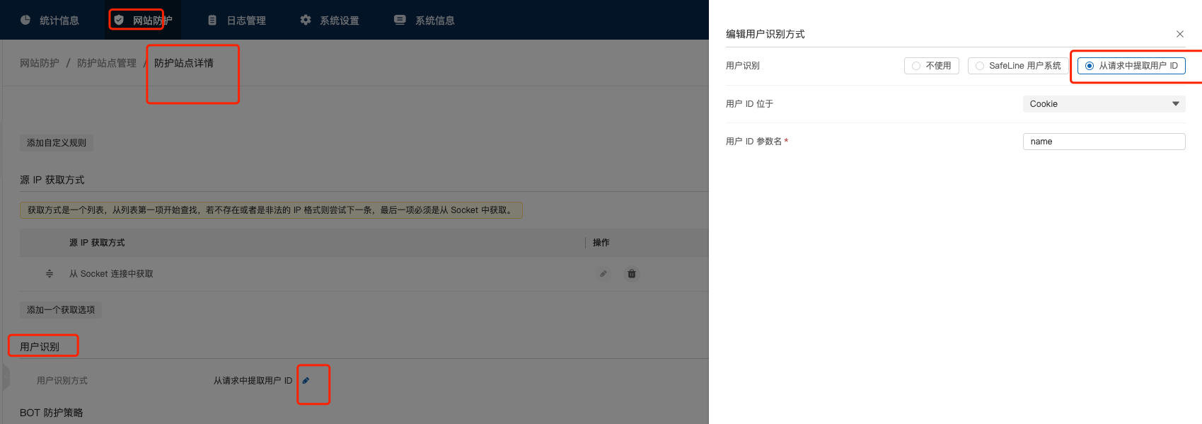 本次使用Session来拿标识封禁,在使用该策略时,需要如下图所示,优先配置用户标识。