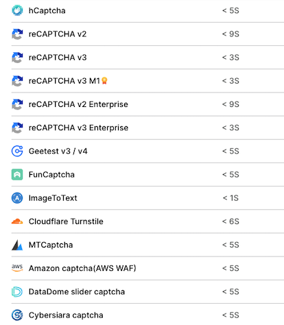 经过 3 次大升级,reCAPTCHA 已经非常成熟,v3 版本已经做到用户无感知识别。不过 reCAPTCHA 并非无懈可击,已经有产品可以破解人机识别。其实不止 reCAPTCHA,其它主要人机识别服务亦无幸免(如图)。