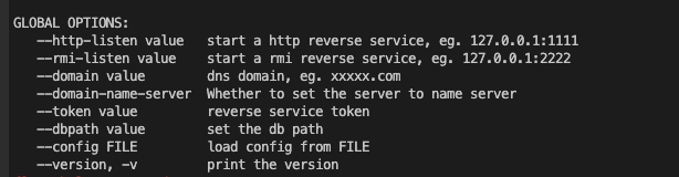 [root@fan ~]# ./reverse_linux_amd64 --http-listen 172.27.201.54:1234 --rmi-listen 172.27.201.54:2345 --token psdpan --dbpath test1.db --domain a.com --domain-name-server true