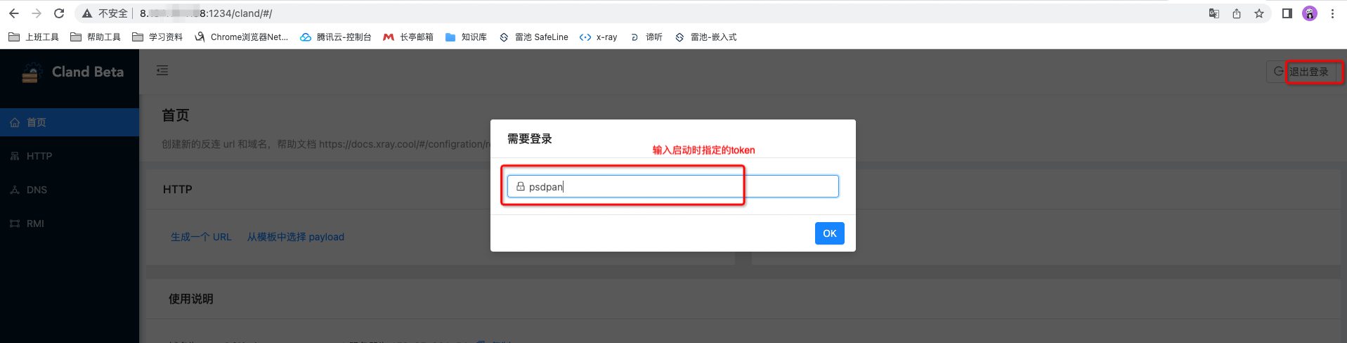 - 通过命令,启动盲打平台的http、rmi、dns、服务,设置token;