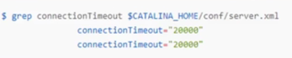 检查方式:检查server.xml配置文件,确保配置文件中存在connectionTimeout的关键字配置;