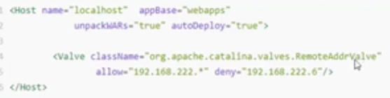 检测方式:检查server.xml配置文件,确保存在关于限制IP对于web管理应用程序访问的配置;