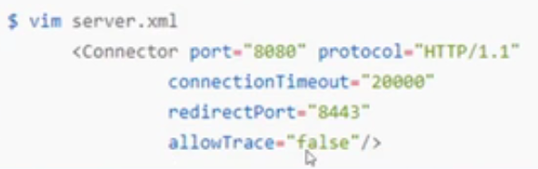 加固方式:将$CATALINA_HOME/conf/server.xml中指定的每个Connector的ALLOW Trace属性设置为false;