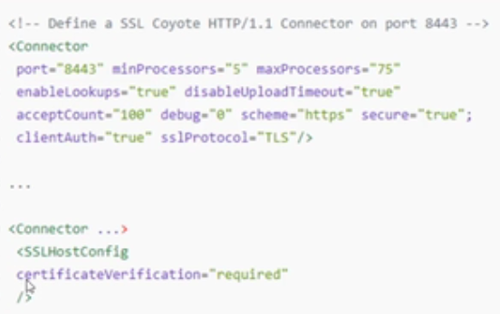 检查方式:检查server.xml配置文件,确保clinnetAuth字段被设置为true并且certificateVerification字段被设置为required;