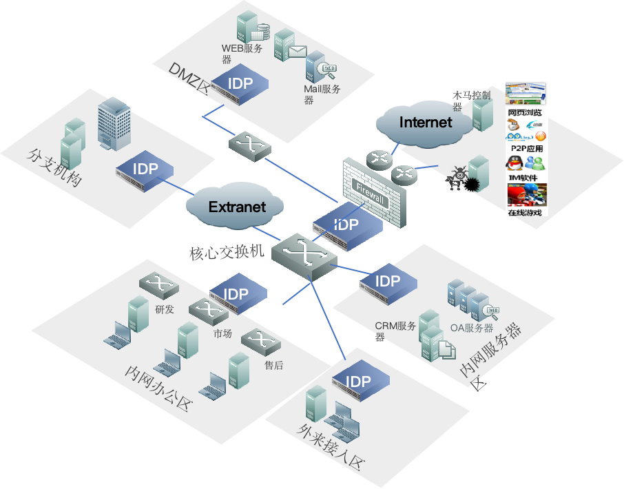 | 分支互联 | 防范低级别分支可能扩散病毒、木马等,以及人员误操作对全网的威胁 |