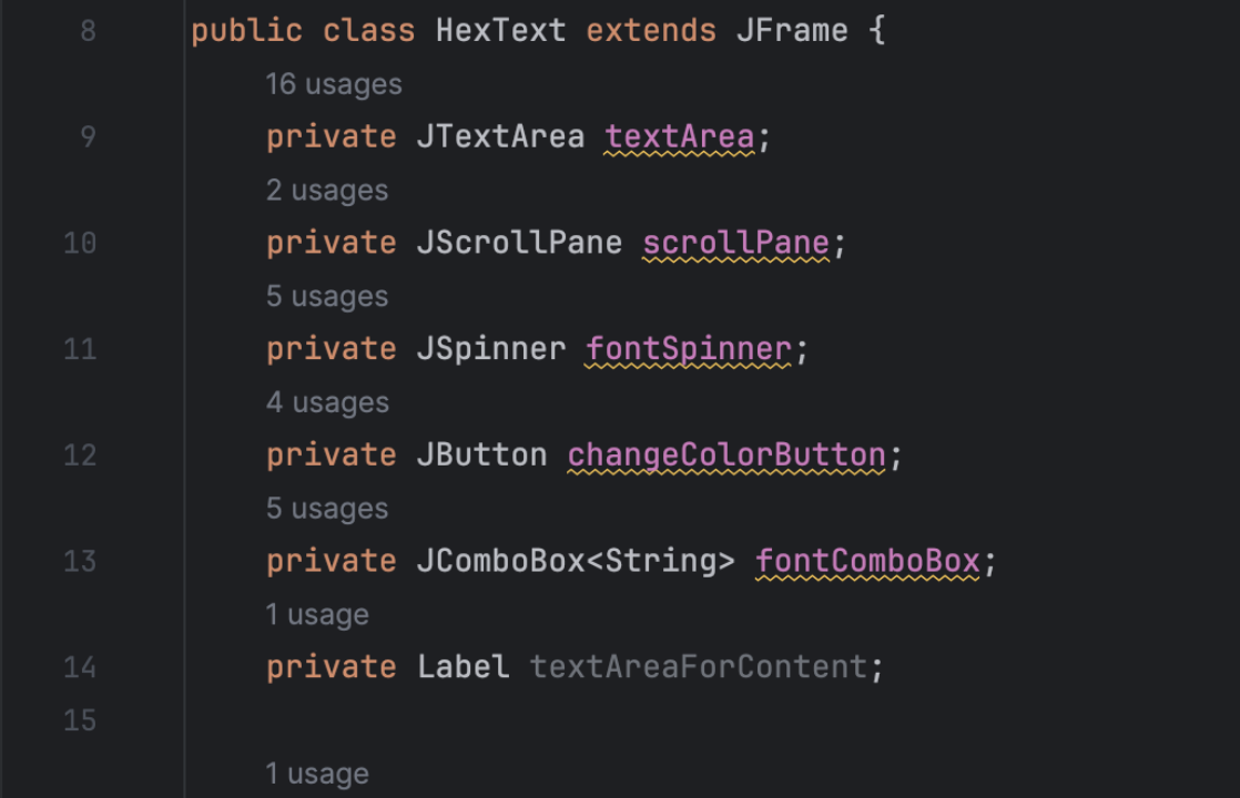 定义了HexText类,用于继承JFrame,生成一个窗口(弹窗)
