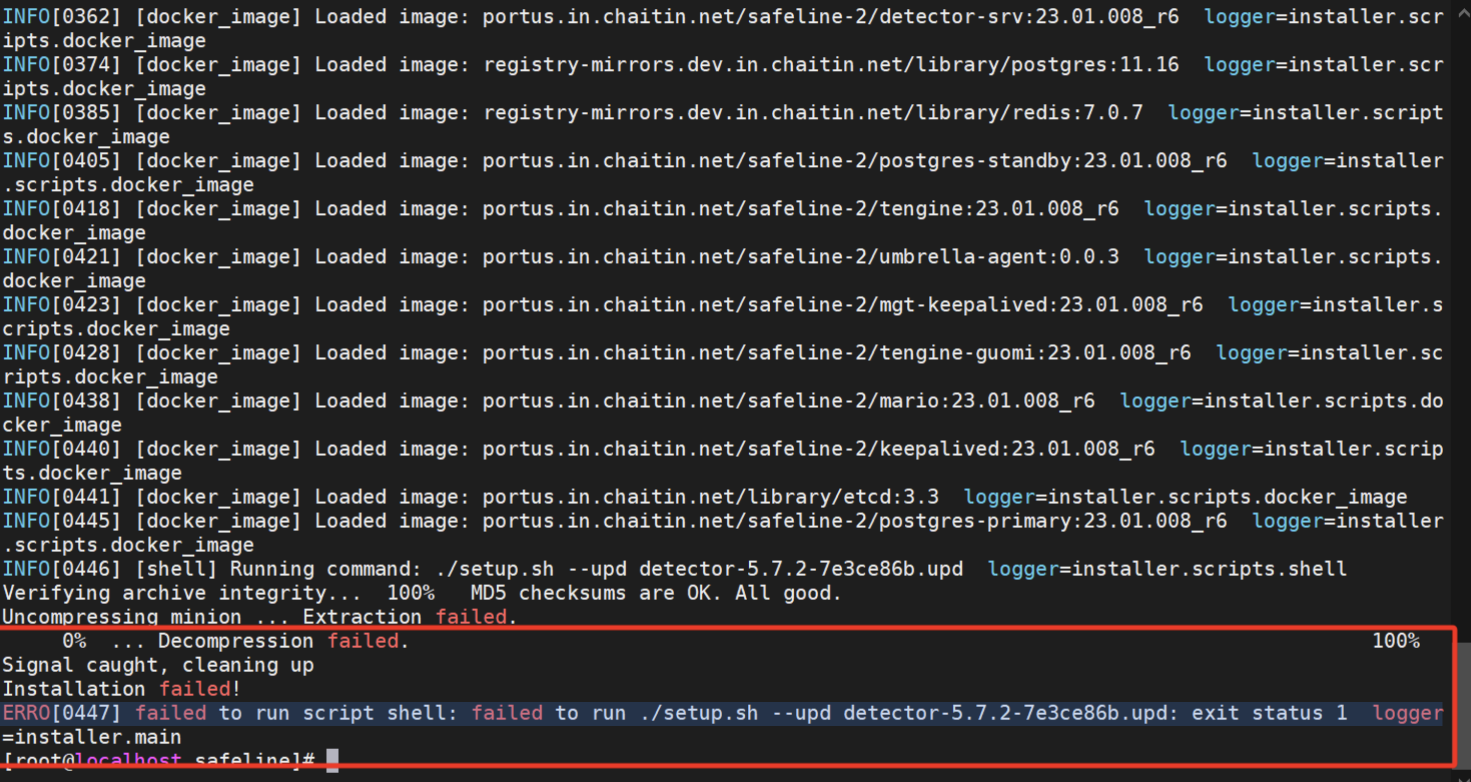 【雷池】软件版雷池安装时ERRO [0447] failed to run script shell: failed to run ./setup.sh - -upd detector-5.7.2-73ce86b.upd: exit status 1