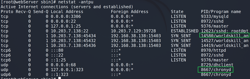 发现有两个进程,PID为10727的肯定是第一个恶意进程