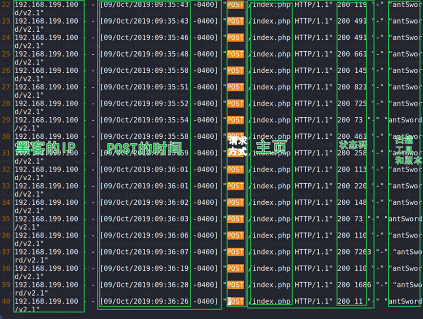 vim access_log-20220815,我勒个骚肛,这么多POST,还是蚁剑的...