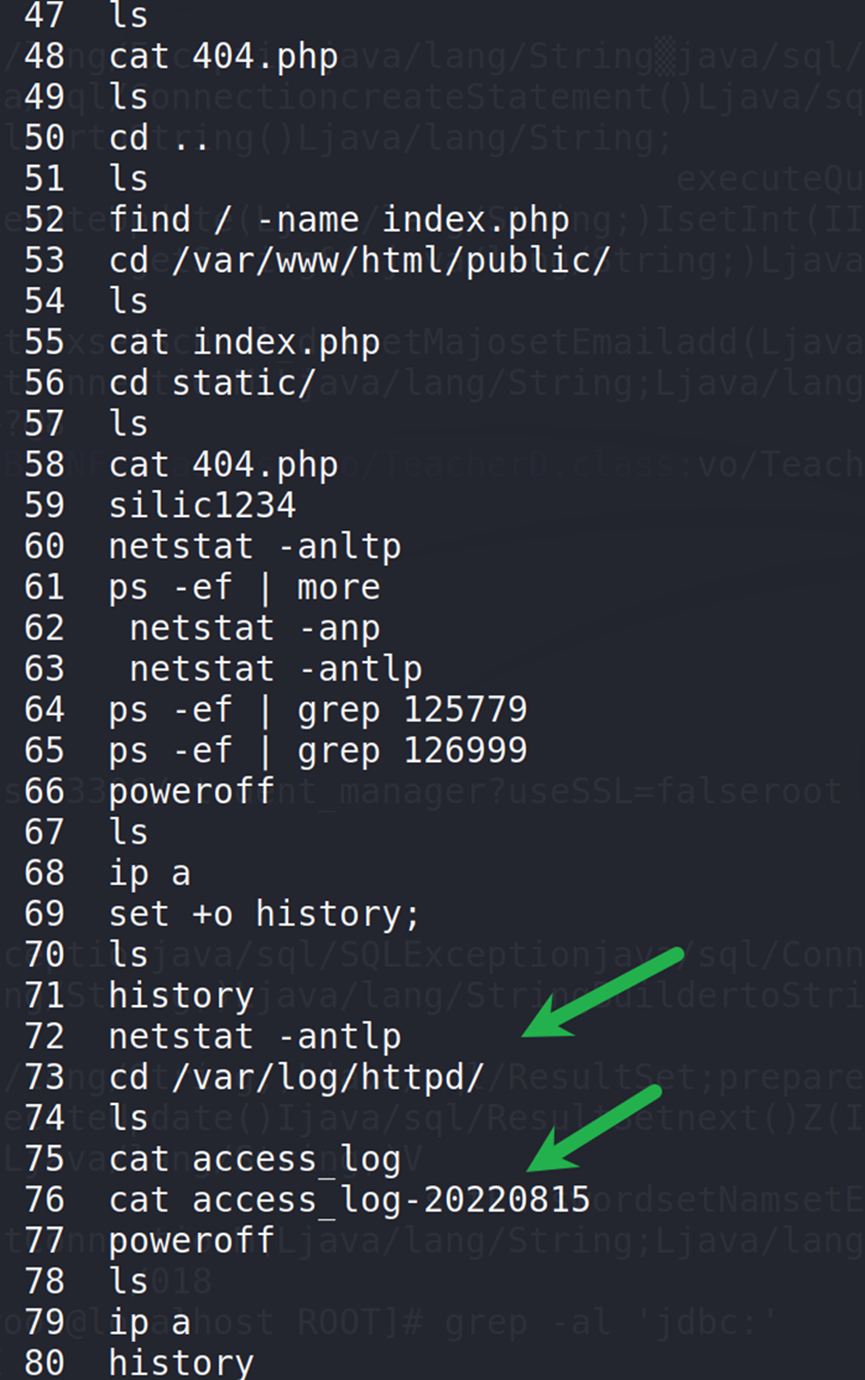 history,看了一下命令历史记录,发现黑客很有可能是在入侵httpd的服务器,并且处理20220815的access_log日志