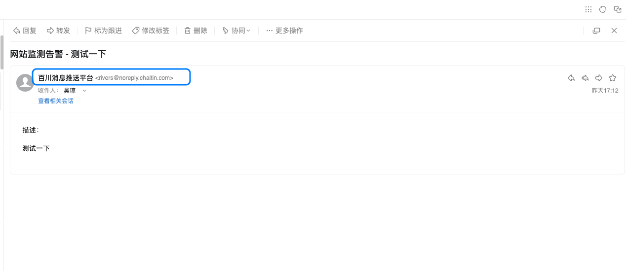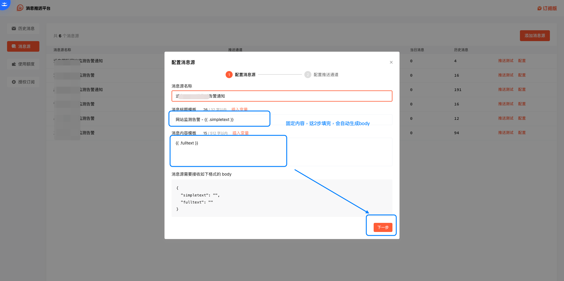 - 消息标题模板:网站监测告警 - {{ .simpletext }}