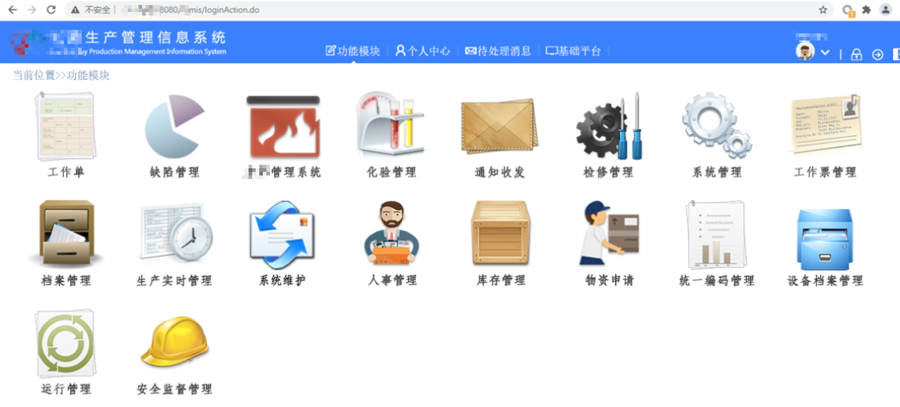 有意思的是,这里发现同一个ip下不同端口对应的不同web应用,一个是8443端口对应安全运营中心,一个是8080端口对应物料管理系统,而该系统采用java语言编写,存在struts2漏洞,利用工具能够直接rce