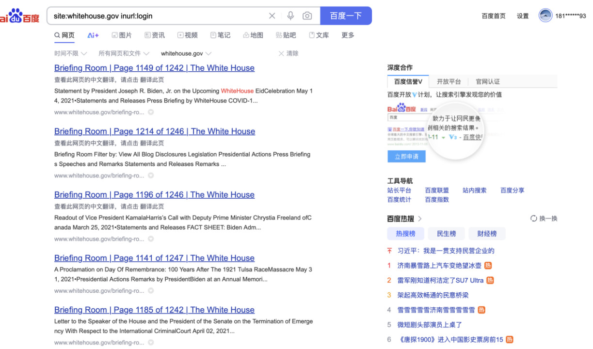 刚开始的信息搜集,用到了谷歌语句,但是百度的感觉,给我强差人意