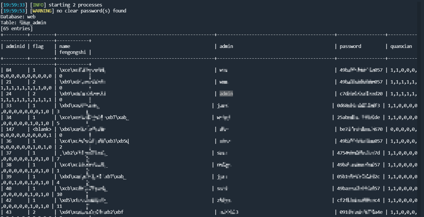 通过注入获取了管理员账号的MD5加密密码,我使用了在线MD5解密工具和彩虹表进行解密,最终成功获取了明文密码XXX