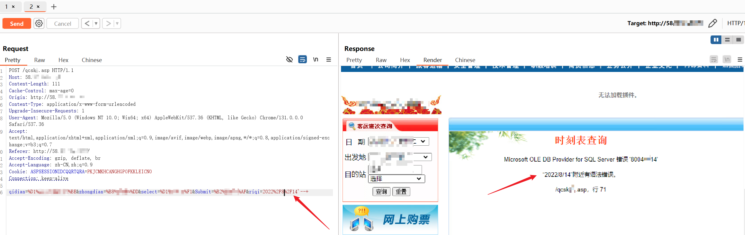 通过信息搜集发现,该公司有很多的子公司,因此在多次尝试母公司网站渗透无果后,我们把目标锁定到子公司了。在其中一个子公司资产下面找到一个新闻发布系统,里面点击带有交互的功能菜单按钮,发现一处sql注入漏洞,注入数据包如下图所示,注入参数为riqi参数
