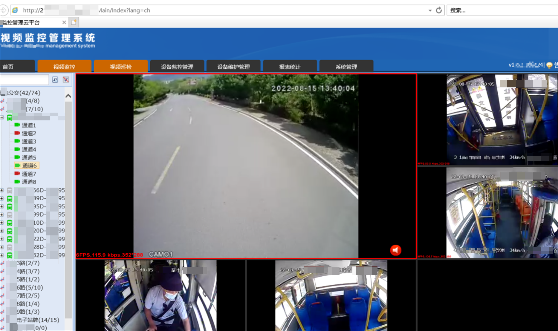 系统2:视频监控管理系统:,该系统可以实时查看所有下属公交车的监控视频画面