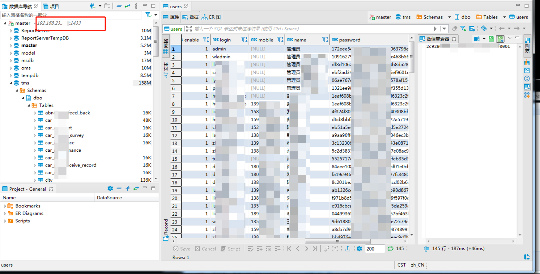 fscan扫描中发现一台开放1433端口的mssql服务器存在弱口令sa/sa