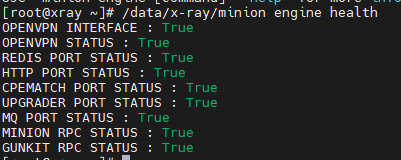 - 检查洞鉴状态, 运行 /data/x-ray/minion engine health,期望结果全为True