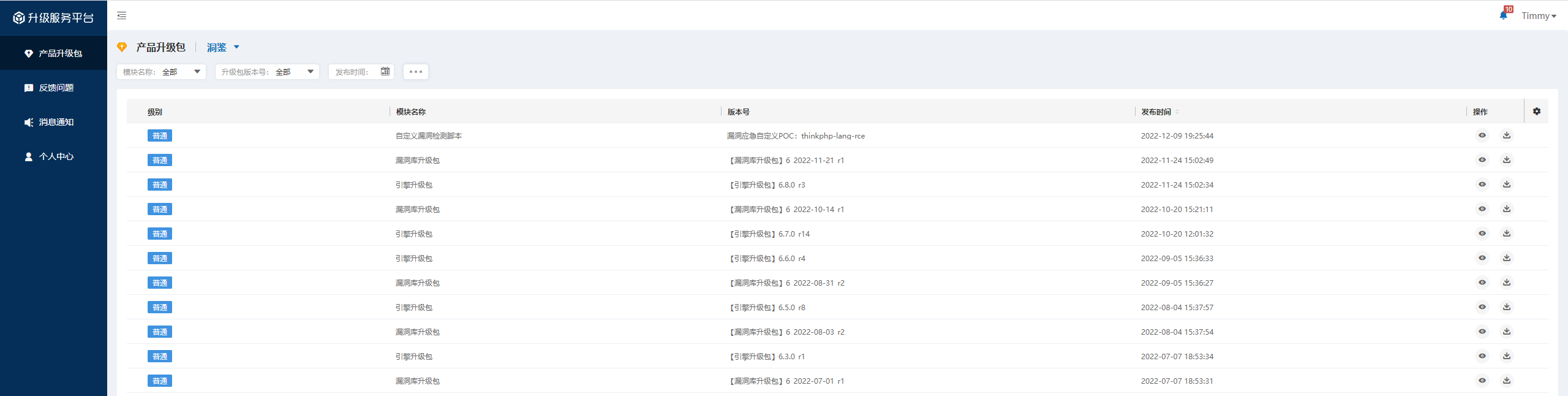 返回到洞鉴设备,发现产品正常获取到更新信息: