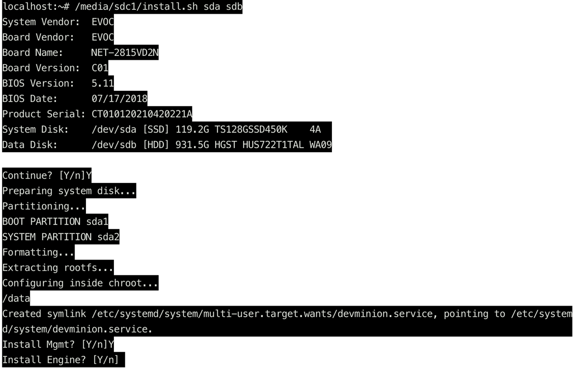 2.执行安装命令后,优先会打印出主板、BIOS、硬盘、序列号等信息
