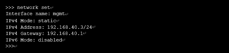 这个界面可以进行网口的设置,假设需要设置 mgmt 为 IP 192.168.40.3/24, 设置如下。