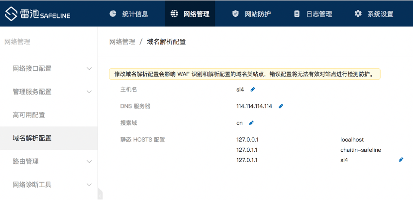 2、如需要WAF通过域名访问某个地址,需要提前配置DNS解析地址