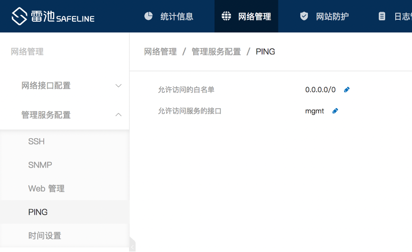 管理服务配置可以根据需要,开启对应服务的可访问接口、源IP等,比如可以开启管理mgmt口的ping功能,方便上线后进行网络连通性测试