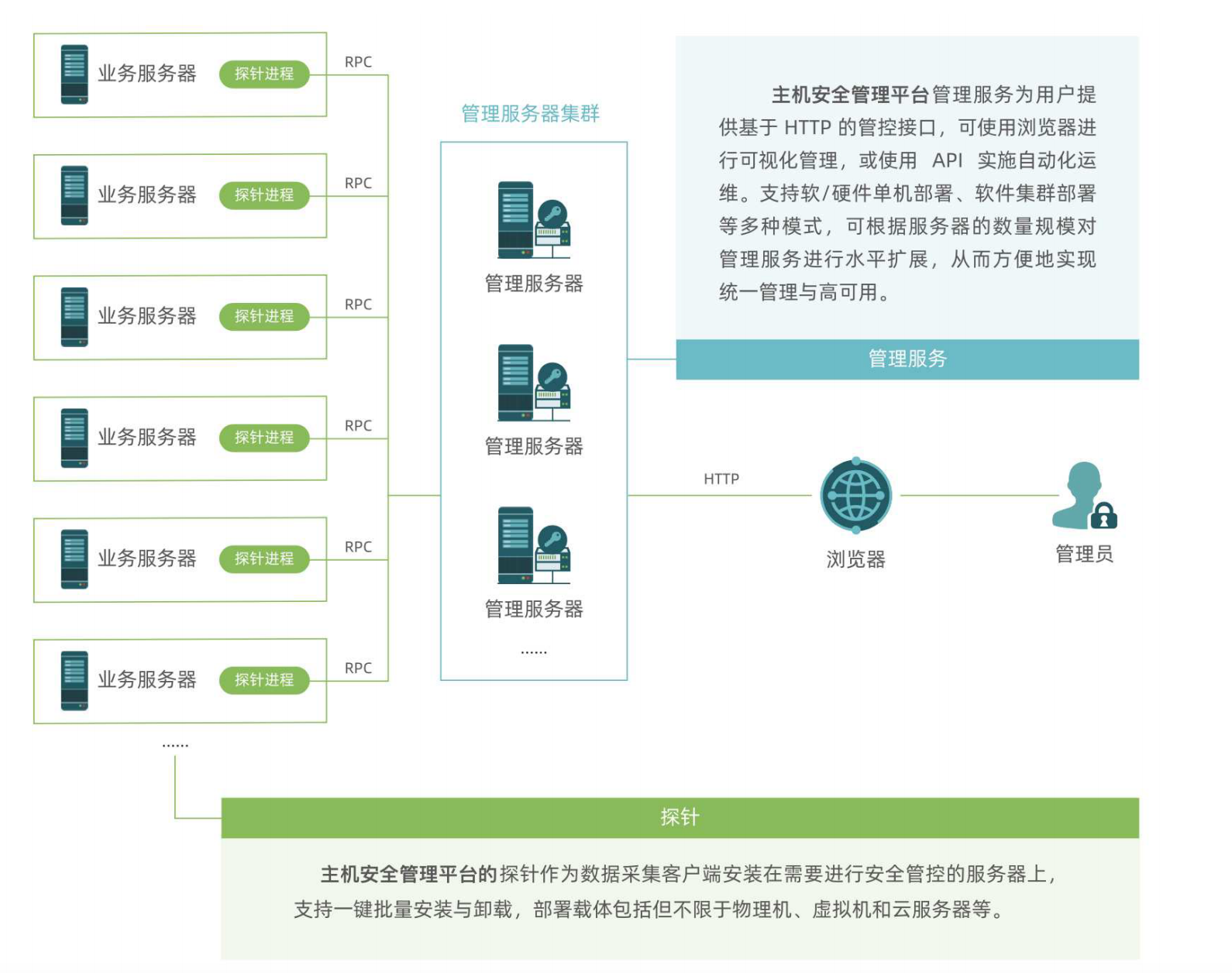 混合云工作负载架构,增加了工作负载平台安全管理的难度,公有云、私有云、IDC 机房环境中不同资产所面对的威胁种类、频次、等级不尽相同,“无主资产” 随时可能成为攻击者入侵的源头,传统的安全边界不复存在,资产暴露面需有效收敛。无论是规避日常风险事件,亦或是有效抵御高级APT攻击,工作负载平台都需要高效的安全管控措施,守护企业核心资产安全。主机安全管理平台,依托创新算法的安全架构及功能,可有效解决传统 HIDS 类产品对于新型网络入侵技术所缺乏的对应检测手段,并通过高效的预防、检测、防护和响应能力,帮助快速精准地发现、解决全网安全威胁和入侵事件,为企业构建最后的安全防线。